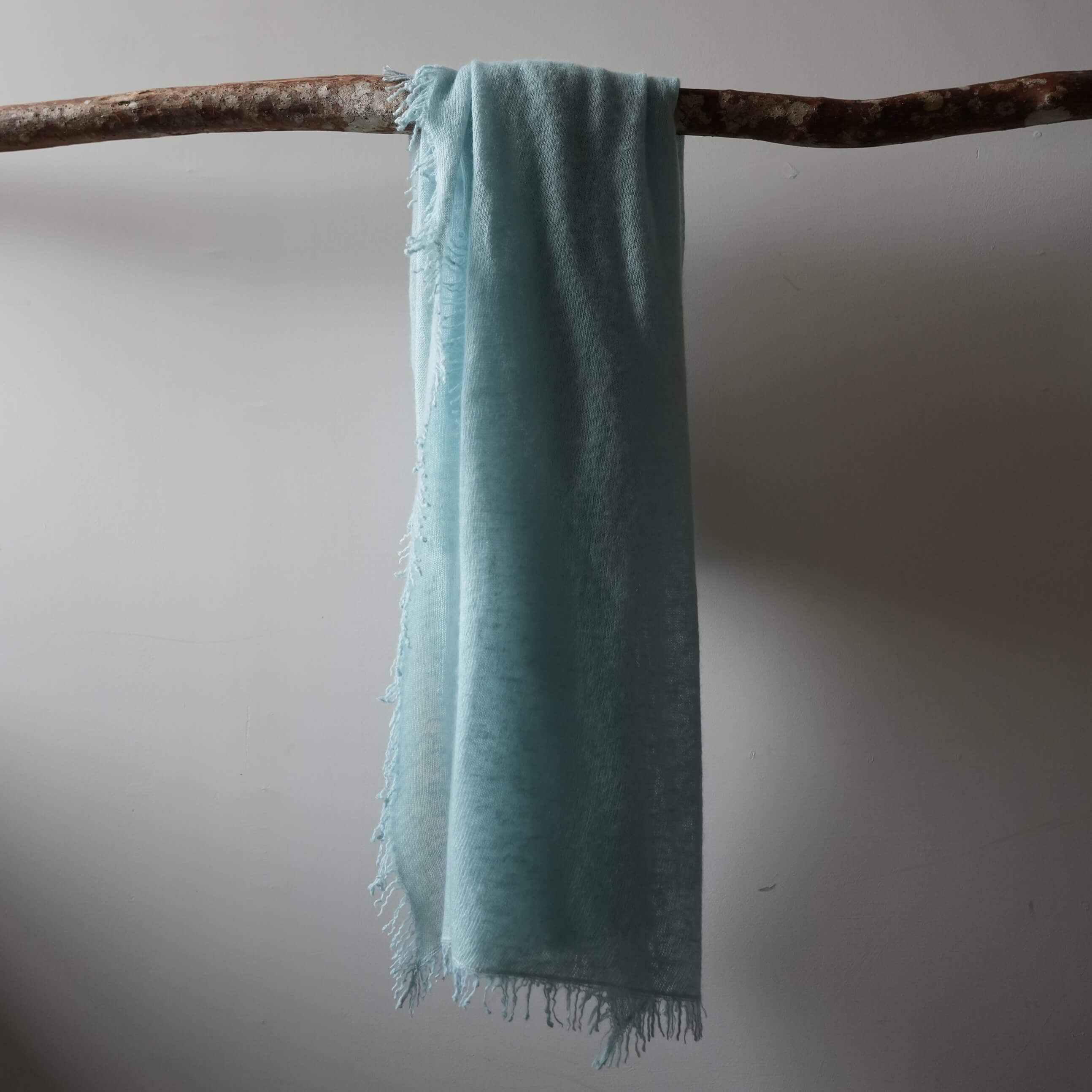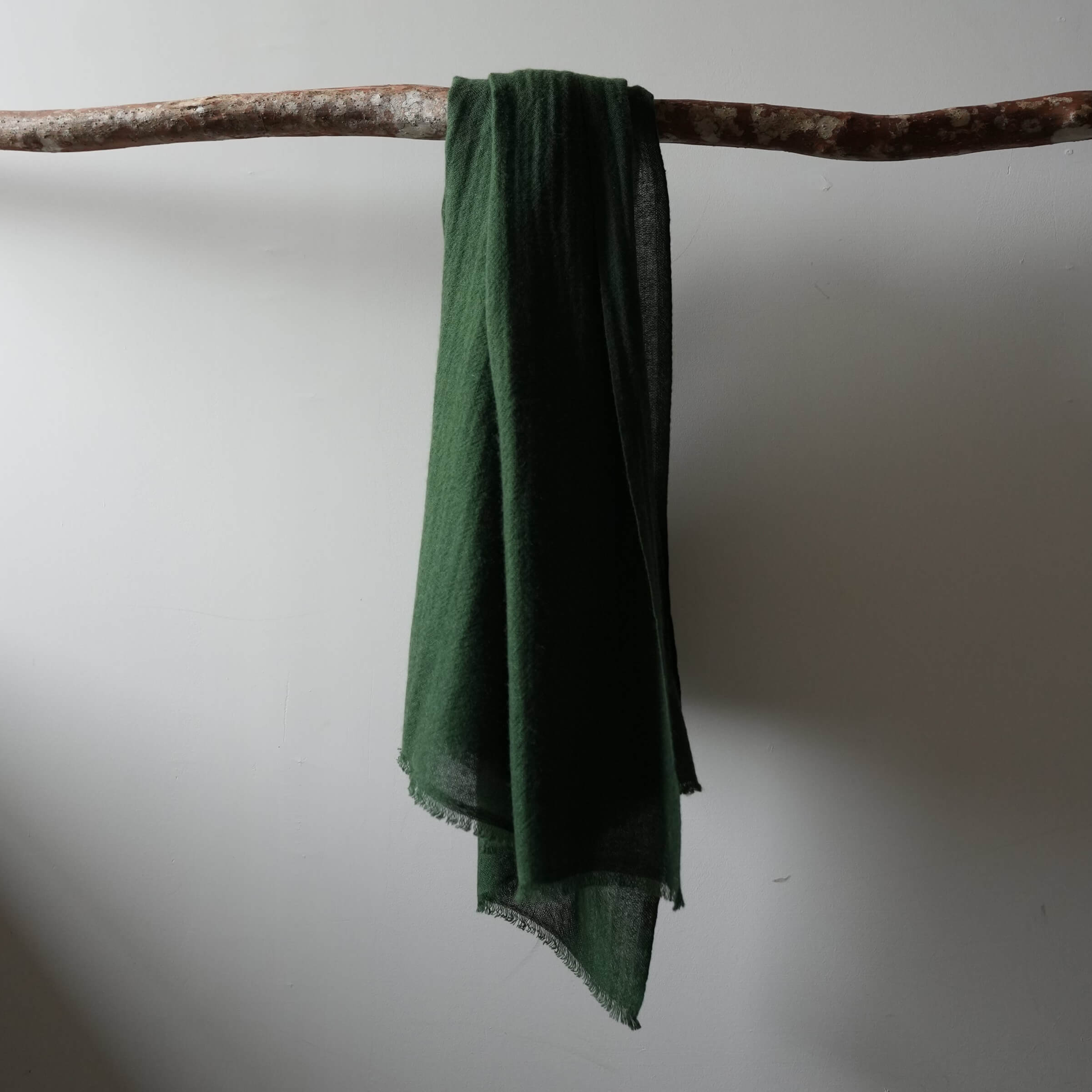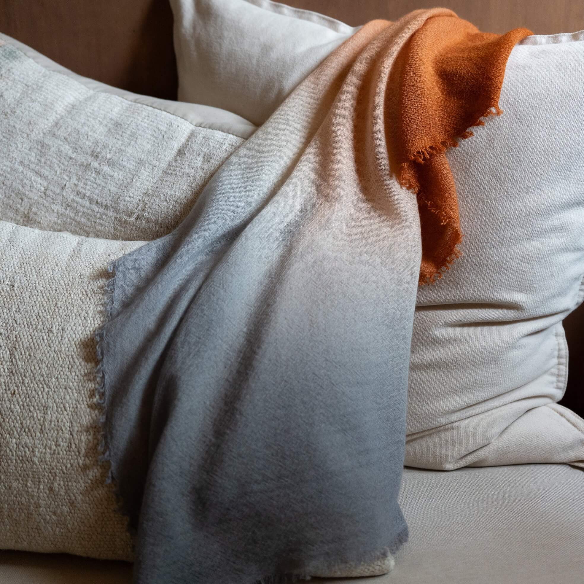在簡約的平織基礎上,方巾採用漸層染色工藝,嘗試捕捉光影流動的層次變化。